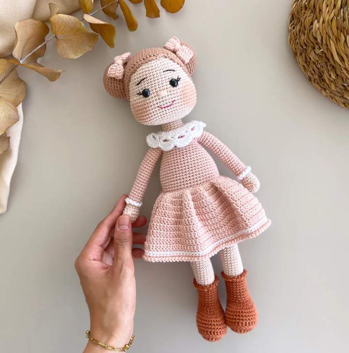 Clara er en håndlavet bamse skabt til tryghed, leg og hyggelige øjeblikke i hverdagen. Hun er hæklet i 100% Oeko-Tex certificeret bomuldsgarn og er helt fri for skadelige stoffer, så du trygt kan give hende til dit barn fra første dag.